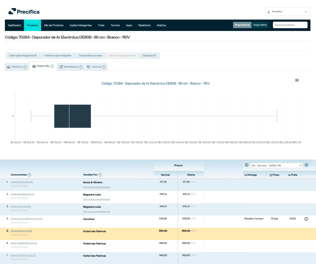 No entanto, o uso isolado do Price Index pode distorcer a percepção do mercado. Isso acontece porque o cálculo normalmente considera uma média simples, que pode ser distorcida por preços muito altos ou muito baixos — conhecidos como outliers. Para evitar esse problema, o monitoramento estratégico nos permite análises mais completas, que consideram outras variáveis. Assim, é possível definir preços mais competitivos e alinhados com o mercado.